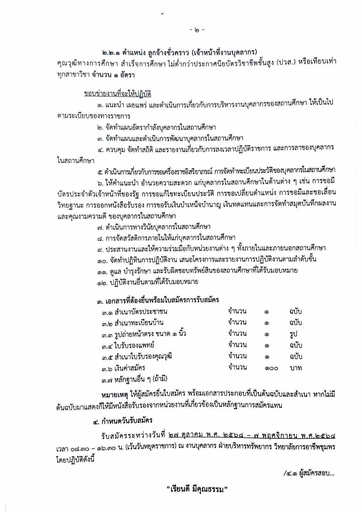 ประกาศรับสมัครลูกจ้างชั่วคราว ตำแหน่ง เจ้าหน้าที่งานบุคลากร