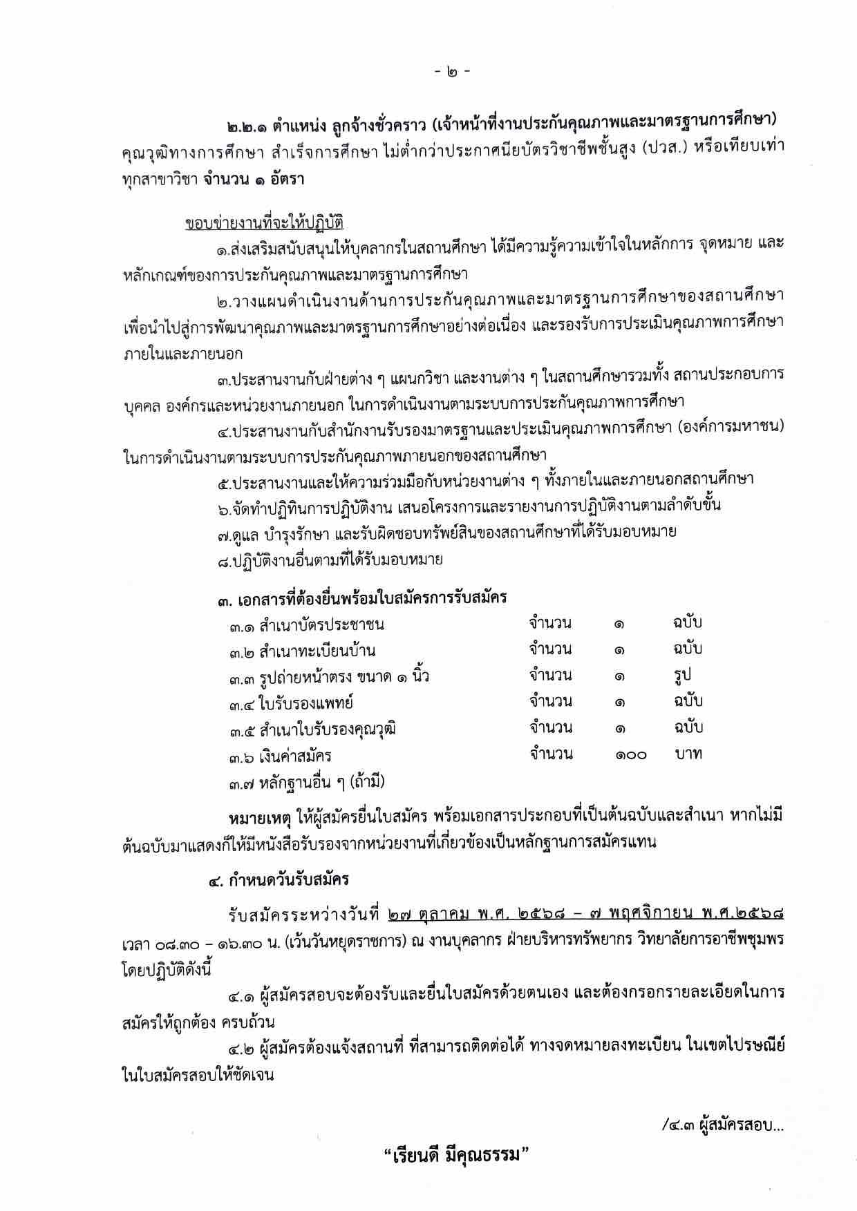 ประกาศรับสมัครลูกจ้างชั่วคราว ตำแหน่ง เจ้าหน้าที่งานประกันคุณภาพและมาตรฐานการศึกษา